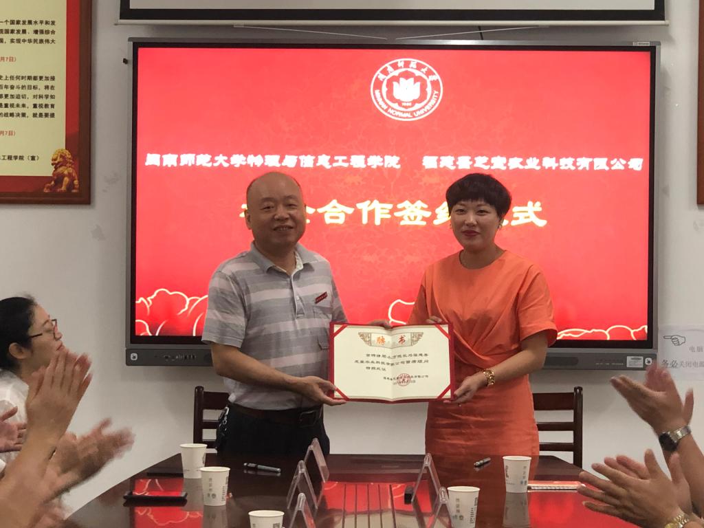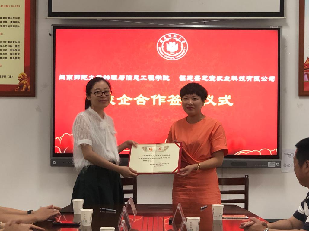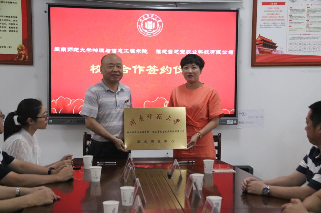 2019年6月12日下午,威廉希尔足球官方网站与福建吾芝堂农业科技有限公司的校企合作签约、授牌仪式在科技楼北区907会议室举行。芗城区区委常委副区长李向东、漳州市农村农业局副局长林可登、威廉希尔足球官方网站经理周小方、公司党委主持工作副书记杨红和,计算机学院副经理陈志翔,福建建达(漳州)律师事务所主任华毅鹰、福建吾芝堂农业科技有限公司总经理简青燕,以及威廉希尔足球官方网站相关领导教师等出席了签约授牌仪式。